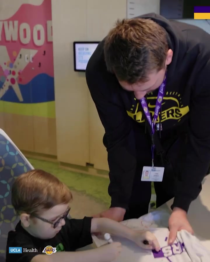 💛💜湖人在UCLA健康中心举行社区活动 詹东里与病患亲密互动